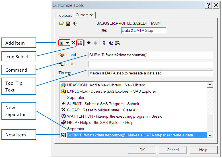 Now let's customize the toolbar in PC SAS to add a button that executes this macro.