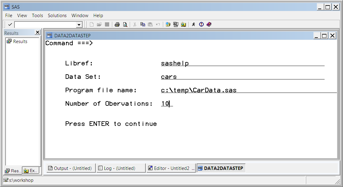 %window Data2DataStep columns=80 rows=20
